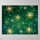 Poster Flocos de neve do Ouro Xmas em fundo verde