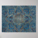 Poster Flor da Vida em Lotus - Mármore Azul e Dourado
