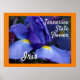 Celebre a beleza da natureza e a flor estadual do Tennessee. Solteiro florescente de uma grande flor da íris. Amável floração em tons de indigo, azul e roxo, com pequenos olhares de amarelo em claro contraste. Dramático e colorido. A design do poster é compensada com a laranja da TN em torno da foto para reconhecer alunos e alunos do Tennessee. Mostre seu orgulho do Tennessee! Feche a fotografia floral.