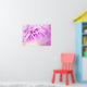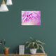 Uma foto mágica de algumas flores rosa bonito. Estas flores têm pétalas longas e finas, com uma cabeça central vermelha. O fundo é um cor-de-rosa macio pastel com bolhas suaves, faíscas de ouro e letra esmaecida para lhe dar um talento romântico mágico.