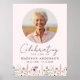 Dê as boas-vindas aos convidados para a celebração de vida de seu ente querido com este cartaz de funeral com foto do prado de flores silvestres elegantes. O design apresenta uma escrita preta manuscrita e uma foto circular. Um belo prado de flores silvestres em aquarela e folhagens alinham a parte inferior do design em tons vibrantes de rosa, amarelo, roxo, azul e verde, contrastando com um fundo rosa claro. Personalize este cartaz de funeral de flores silvestres com o nome do seu ente querido e as datas mostradas abaixo.
