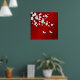 Um galho de cereja preto e branco floresce e duas borboletas bonitinhas em um fundo vermelho brilhante. Eu criei este design ilustrativo com amor ao detalhe como um arquivo vetorial.