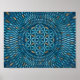 Flor da Vida nas pétalas mandala - Azul mármore e ouro