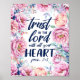 Este belo impressão de poster apresenta um quadro floral de cor d'água e uma leitura de tipografia na moda, "confiança no senhor com todo o seu coração."