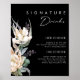 Nós projetamos este letreiro de bebidas assinadas Floral Branco | Preto para completar o seu casamento rústico tropical escuro. Com sua água-furtada boêmia com folhagens até suas flores modernas de inverno boho, incluindo protea, dália e lótus seco, o design certamente destacará seu tema minimalista e sombrio de preto e verde. Altere o texto e adicione uma foto para torná-lo seu. Além disso, certifique-se de ver o resto da coleção para encontrar itens coordenados que unirão todo o seu casamento! https://www.zazzle.com/collections/white_floral_collection-119896729923706651