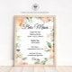Welcome guests in style with this elegant Floral Bar Menu Bridal Shower Sign, featuring soft peach peony flowers and romantic garden-inspired details. Perfect for bridal showers, engagement parties, and wedding celebrations, this beautiful sign adds a charming touch to your drink station.