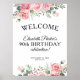 Elegant pink flowers, feminine floral 90th birthday party welcome sign poster. Easy to personalize with your celebration details. Digital download available.