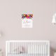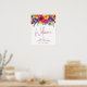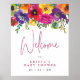 Um sinal colorido de boas-vindas ao chá de fraldas de verão. Este design apresenta uma grande parte superior de flores vibrantes de aquarela em roxo, rosa, amarelo e laranja, e "bem-vinda" no estilo manuscrito preto-rosa-escuro. Personalize com seus detalhes.