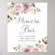 Floral Mauve Blush Elegante Casamento Mimosa Bard Sinal. Sinal de Poster de Bar Mimosa com Recepção de casamento Púrpura Floral de Script Elegante