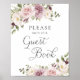 Floral Mauve Blush Elegante Sinal de Livro de Convidado. Símbolo de Livro de Convidado de Recepção de casamento Púrpura Floral Branco Floral de Script Elegante