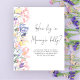 O convite para chás de fraldas apresenta lindas flores silvestres de aquarela e um roteiro de caligrafia que é perfeito para chás de fraldas de primavera, verão ou outono. Bebê na flor!