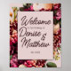 Bem-vindos aos seus convidados em estilo com esta elegante placa de casamento floral. Projetado com florescências românticas e letras graciosas, ele lê "Bem-vindo ao Nosso Casamento" e apresenta seus nomes personalizados. Mostre-o na entrada da cerimônia ou na recepção para um toque pessoal e polido. Perfeito para temas florais, de jardim ou de casamento moderno.