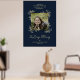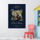 Cartaz de casamento com letra à mão elegante em azul marinho.