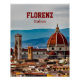 Das Florenz Italien Poster. Die italienische Stadt mit den Sehenswürdigkeiten ist perfekt für den nächsten Sommerurlaub. Im Hintergrund die Berge.