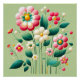 Arranjo vibrante e intrincado de flores, criado em um estilo tridimensional. As flores têm uma variedade de cores, incluindo tons de rosa, branco e amarelo, com folhas verdes exuberantes fornecendo um pano de fundo. Há numerosas formas florais, algumas com pétalas em camadas e desenhos únicos, criando uma composição animada e divertida