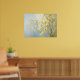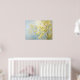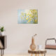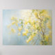 Este trabalho de arte impressionista abstrato apresenta ramificações amarelas da forítica em um fundo azul macio.
