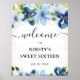 Poster Flores Azuis e Marinhos Doce 16 Boas-vindas