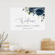 Poster Flores Azuis-Marinho, Folhagens, Boho, Recepção de