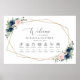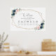 Adicione um toque pessoal à sua celebração de casamento com estes itens de na moda e festa memoráveis! Design apresenta marinho e flores cor-de-água cor-de-rosa-claro, verde e estrutura dourada sobre fundo branco.