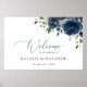 Adicione um toque pessoal à sua celebração de casamento com estes itens de na moda e festa memoráveis! Design apresenta flores de marinho azul-aquarela e verde em fundo branco.