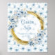 Poster Flores azuis-pastel-doce, dourado, sinal personali