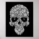 Este design floral único apresenta um crânio estilizado constituído por flores, vinhas e folhas. As videiras giratórias surgem entre as flores que mantêm o padrão unido e lhe dão a aparência de um crânio de açúcar Morto. Os dentes do crânio são formados por folhas longas penduradas, enquanto duas videiras espirradas criam uma sugestão dos olhos. Este lindo padrão é um design de crânio único e na moda.