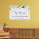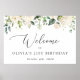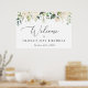Adicione um toque pessoal à sua celebração de aniversário com estes itens de na moda e festa memoráveis! Design apresenta flores brancas de aquarela e verde em fundo branco.