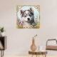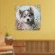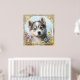 Gorgee Watercolor Siberian Husky design com flores amarelas, vermelhas e brancas e armação de ouro vintado
