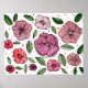 Poster Flores de aquarelas e de tinta - rosa e verde