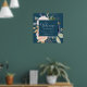 Este poster de casamento azul e marinho floral é perfeito para um casamento floral. O clássico e elegante design apresenta marinho de aquarela azul e flores cor-de-rosa pinceladas sobre fundo azul-lacrimogêneo. Personalize o poster com o nome da noiva e do noivo, e a data do casamento.