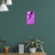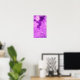 Poster púrpura de flores, composição de efeito de luz inspirada num buquê de flores pequeno que usava muitos tons de roxo e violeta. A inspiração veio da forma como a luz da manhã tocava com todas aquelas cores multiplicando os tons e criando contornos brilhantes para as pequenas pétalas. O efeito interessante dos feixes de sol sobre as flores foi recriado até certo ponto pela aplicação do efeito fraturizante na imagem do buquê. Esse filtro produz manchas leves nas bordas das pétalas, bem harmonizadas com a forma pétala, como na imagem de origem.