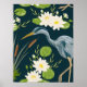 Poster Flores de Lírio de Taboa Pássaro Garça Paisagem Fl