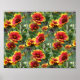 Efeito cortado delicioso, vermelho e amarelo, flores de margarida poster impressão. Fotografia da Flor por Susan.