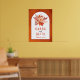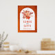Flores de outono e cartões botânicos de arco de laranja queimados e presentes poster de casamento. Esta bela design de casamento mostra uma armação em fundo vermelho laranja queimado. No quadro há o texto e um buquê de flores dalia e folhas em cores de outono.