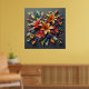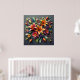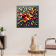Arranjo vibrante de flores e folhas de papel coloridas, mostrando vários desenhos florais em tons de laranja, vermelho, roxo e verde contra um fundo escuro. A arte em papel apresenta detalhes intrincados, destacando tanto as flores quanto a folhagem em uma composição lúdica e elegante.