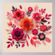 Arranjo colorido de flores de papel em várias formas e tamanhos, apresentando pétalas e folhas intricadas em camadas. O design exibe uma variedade de cores vibrantes, incluindo tons de rosa, vermelho, laranja e roxo, criando uma composição floral visualmente impressionante.