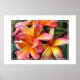 Poster mostrada com uma impressão de foto de lindas flores de plumeria coloridas. Personalize este item ou comprar como está. Imagem do stock pixabay.com