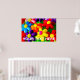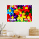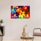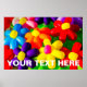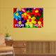 Um monte de balões infláveis de brinquedos moldados como flores de diferentes cores. Férias felizes! Seja feliz! Apenas um poster para as suas necessidades. Você pode alterar ou excluir o texto modelo