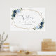 Adicione um toque pessoal à sua celebração de casamento com estes itens de na moda e festa memoráveis! Design apresenta flores marinhos e azuis de cor d'água, tela verde e estrutura dourada sobre fundo branco.