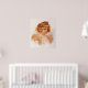 Criança vitoriana com coroa de flores rosa no cabelo encaracolado. O vestido pastel macio, cor-de-rosa, com capas de rendas, completa a ilustração elegante da safra.