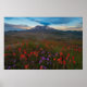 Esta incrível foto do Getty Images mostra o Pincel da Índia e as flores silvestres Penstem e o pôr do sol sobre a Rua Monte Helens em Washington.