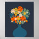 Poster Flores Retro Cheias num Vaso Azul