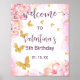 Poster Flores rosa Ouro Borboletas Partido Bem-Vindo