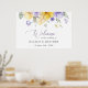 Adicione um toque pessoal à sua celebração de casamento com estes itens de na moda e festa memoráveis! Design apresenta flores roxas e amarelas de aquarela e verde sobre fundo branco.