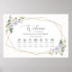 Adicione um toque pessoal à sua celebração de casamento com estes itens de na moda e festa memoráveis! Design apresenta flores roxas e brancas de aquarela, verde, confete dourado e moldura dourada sobre fundo branco.