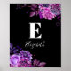 Poster Flores roxas. Monograma de menina. Berçário negro