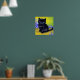 Poster com um gato preto no estilo de Vincent van Gogh! Este querido de olhos azuis fica adoravelmente com flores roxas contra uma parede verde e mesa amarela. Um presente maravilhoso para amantes de gatos e colecionadores de arte holandeses!