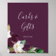 Este letreiro com flores roxas escuras para cartões e presentes é perfeito para um casamento moderno ou chá de noiva. O elegante design floral apresenta flores de tulipa roxas escuras e brancas com folhas esmeralda e detalhes em folha de ouro. A linha de texto na parte inferior do letreiro pode ser personalizada com a data, os nomes da noiva e do noivo, ou uma mensagem curta como "Obrigado". Este letreiro pode ser usado para um casamento ou qualquer evento ou festa.