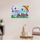 Um grande poster colorido para o quarto de uma criança com o nome Hannah. Flores coloridas, púrpura, rosa, vermelha, amarela, azul e verde, com um arco-íris bonito, borboletas, lagartas e preguiças.