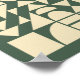 Padrão geométrico moderno com formas simples em creme num fundo verde florestal.